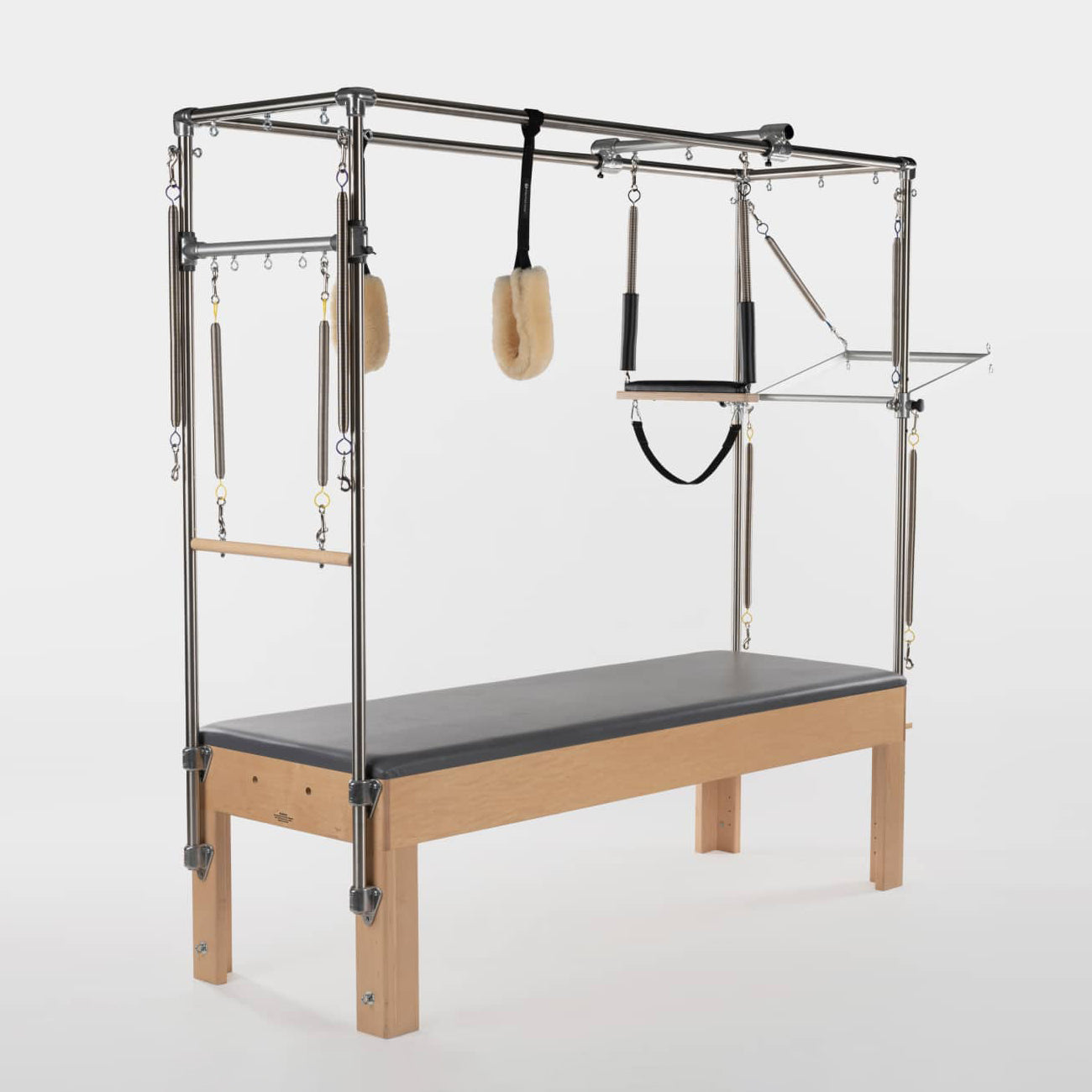 Our Studio Reformer® with Tower and Mat allows you to move through most of the Cadillac repertoire in multiple planes of resistance. You can work out on the mat or moving platform, as well as from the Tower's back and sides.